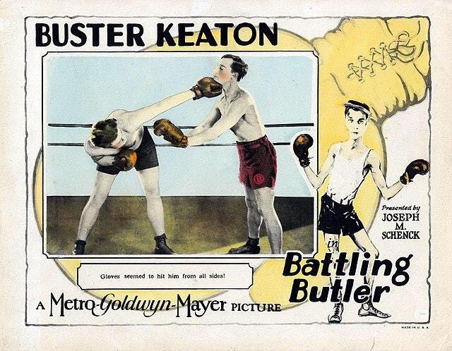 Battling Butler (1926) Directed by Buster Keaton. With Keaton, Sally O’Neil, Snitz Edwards, Francis McDonald. Silent. Streaming on Criterion, Filmbox, Tubi, and Prime.